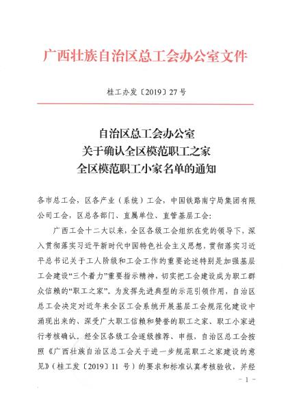 公司机关工会荣获“2019年全区模...