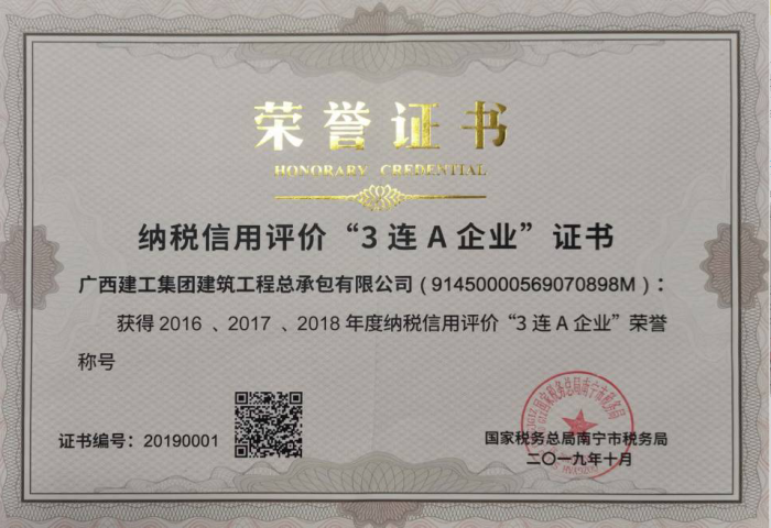 公司获得纳税信用评价“3连A企业”...