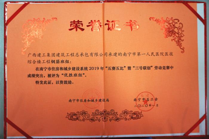 公司南宁市一院工程获评“五赛五比”...