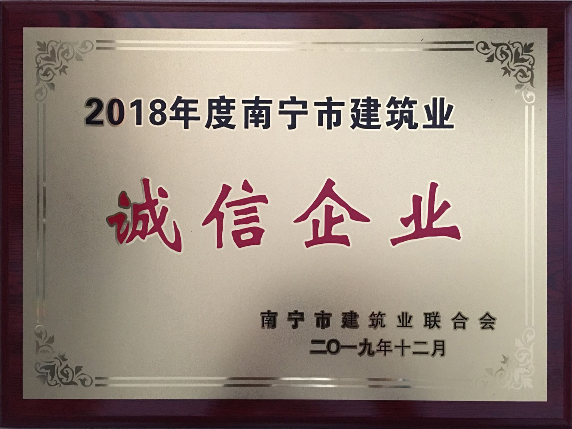 2018年度南宁市修建业诚信企业