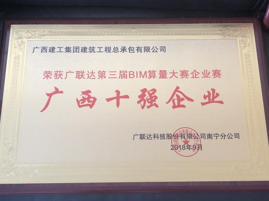 第三届BIM算量大赛企业赛广西十强企业